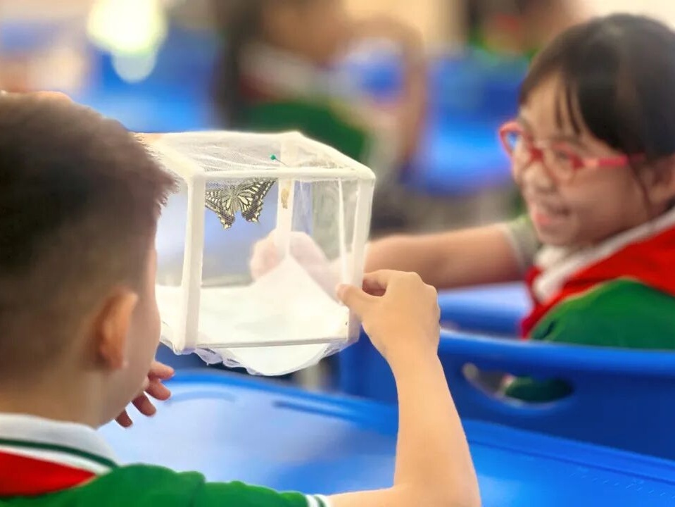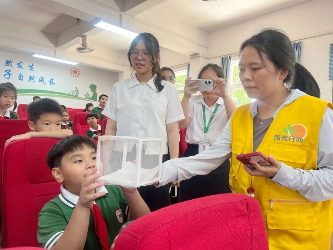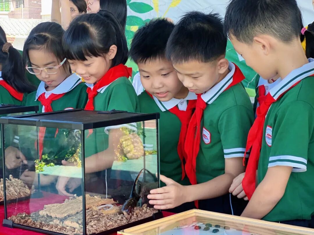 活动现场还设置了昆虫活体与标本展览,昆虫活体展区陈列了具有代表性的昆虫,并配备模拟自然栖息地的生态容器供学生直观观察,成为孩子们探索自然的“第二课堂”;标本展区则陈列了多类标注明确的昆虫标本,还有志愿者现场引导学生进行对比学习。