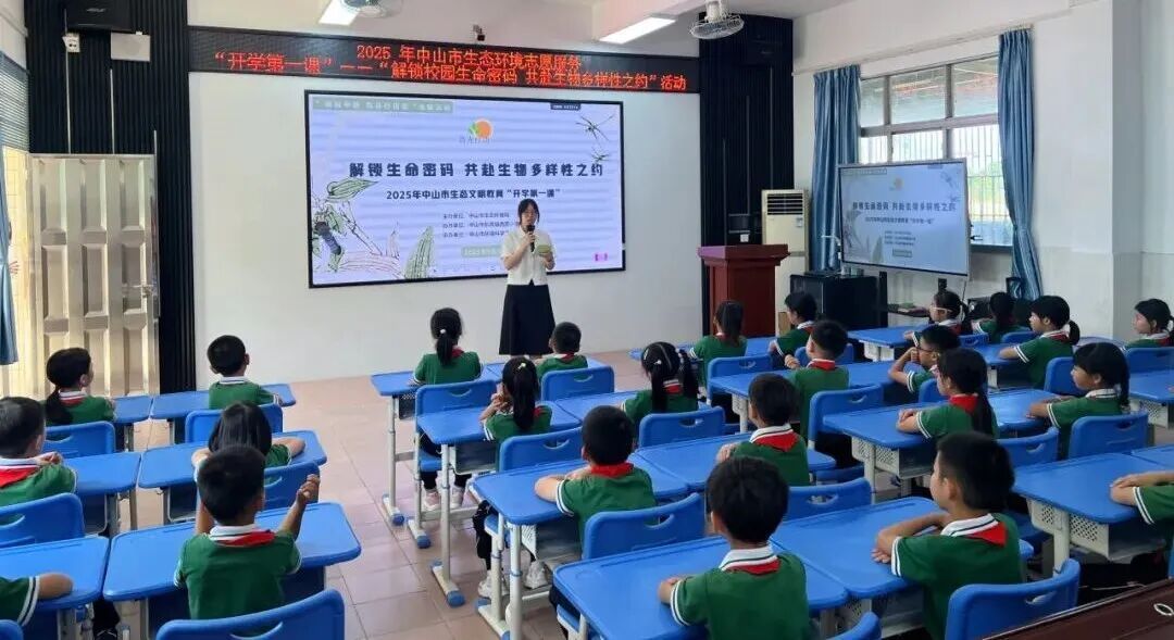 本次“开学第一课”以“解锁生命密码 共赴生物多样性之约”为核心主题,由中山市生态环境局主办、中山市环境科学学会承办、西罟小学协办,聚焦乡村青少年生态文明素养培育,通过“科普授课+昆虫展览”双环节设计,将生动的自然知识与实践观察相结合,为孩子们扣好生态文明教育的“第一颗纽扣”。
