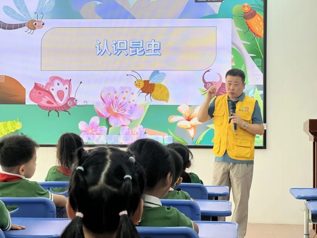 活动现场,中山生态环境志愿者面向学生开展了以“昆虫知识”为主题的科普课程。志愿者结合多媒体资源、趣味互动问答以及贴近生活的案例,对昆虫的分类特征、生长周期、生态功能以及与人类生活的关系进行了系统阐述,旨在助力学生构建关于昆虫世界的科学认知,激发其对自然生态的探索兴趣与保护意识。